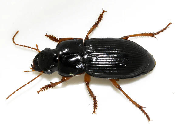 - жвалы (мандибулы) столь же вытянуты наружу как и у Harpalus rufipes, но только имея лишь два зубчика на вершине внутрь загнутого ретинакулума;