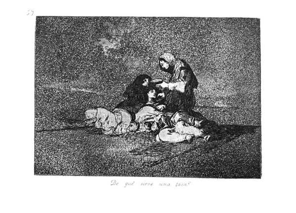 Гойя не задаётся вопросом о причинах голода и не винит ни одну из сторон. Его интересует только как голод сказывается на народе. Хотя изображения этой серии основывались на впечатлениях, вынесенных из Мадрида, ни одна гравюра не изображает конкретные события. На гравюрах нет зданий, по которым можно было бы идентифицировать местность. Гойя заостряет внимание на тёмных скоплениях мёртвых и полуживых людей, мужчин, несущих женские трупы, брошенных детях, оплакивающих родителей. Хьюз считает 50-й лист «Несчастная мать!» (Madre infeliz!), самым сильным из серии. По его мнению, пространство между маленькой девочкой и телом её матери олицетворяет «тьму, представляющую собой суть потери и сиротства». Эта серия листов была предположительно завершена в начале 1814 года.