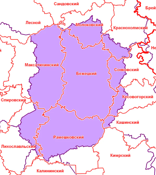 В настоящее время территория Бежецкого уезда (в границах на 1917 год) входит в состав 9 районов Тверской области: