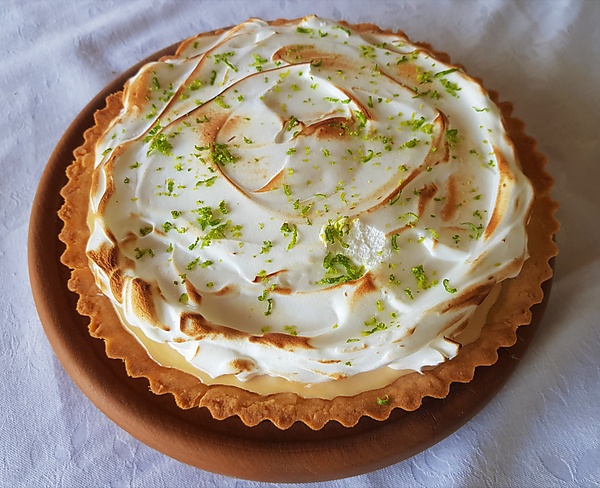 - в качестве верхнего слоя готового лимонного пирога с последующим обжиганием горелкой.