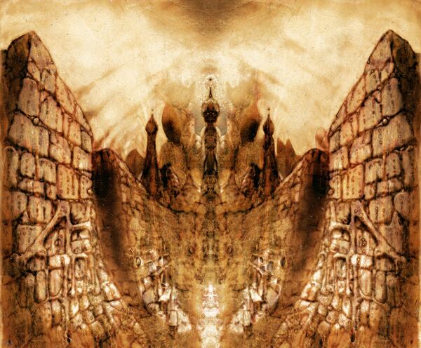 Ученый изучает высеченный в скале храм. Песчаная буря вызывает звон ветра из подземных глубин, подобно тому, как приветствовали солнце колоссы Мемнона с берегов Нила. В храме удивительно низкие алтари, ниши и идолы. Потолок настолько низкий, что едва можно стоять на коленях. Ученый ночует в лагере. В храме на юге он спускается в вырубленный в скале проход, словно, в колодец. Туннель ведет в зал, освещенный жуткой подземной фосфоресценцией, где стоят гробы с мумиями рептилий. Настенная роспись и фрески неописуемых цветов, и линий отражает историю города.
