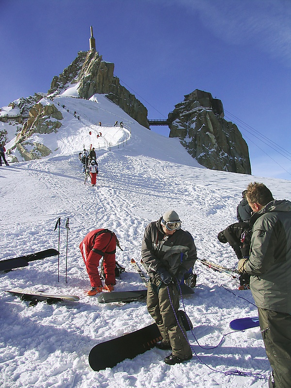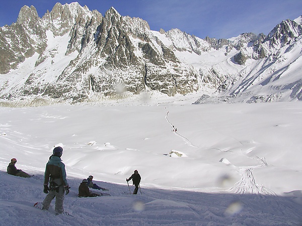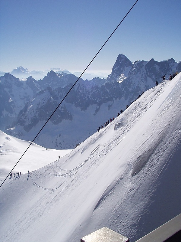 При подъёме со стороны Франции, из Шамони, начало спуска — обзорная площадка на вершине Эгюий-дю-Миди (3840 м), подъём на которую осуществляются в гондоле маятниковой канатной дороги. Перепад высот спуска составляет около 2700 м. В зависимости от состояния снежного покрова возможен спуск прямо до Шамони.