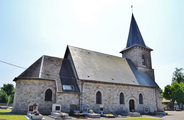 - Католическая церковь святого Мартина, восстановленная после Первой мировой войны, с кладбищем вокруг неё.