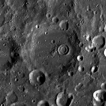 В районе кратера видны слабые следы лучей от кратера Ом находящегося в 500 км западнее.