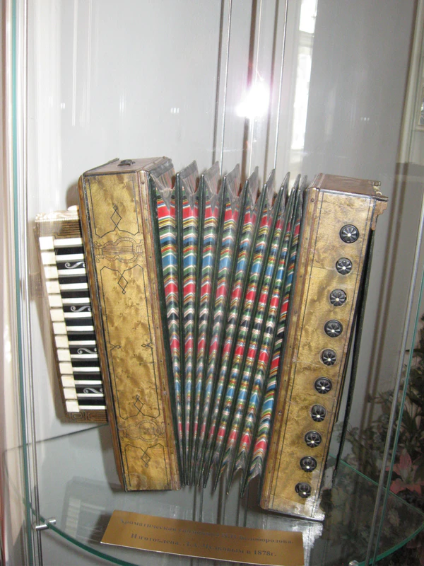 В марте 1878 года первая в России (по мнению некоторых исследователей — первая в мире) хроматическая гармоника была сконструирована. Опыт оказался на редкость удачным. По мнению музыковеда А. М. Мирека, гармоника была «настоящим шедевром по сравнению с другими, выпускавшимися в то время». Она была необычно устроена: на узком и небольшом корпусе размещалось шесть рядов планок. Одновременно звучали три голоса: два в унисон и один — октавой ниже. Существенную роль играла своеобразная резонаторная камера, в которой происходило преломление звуковых волн и возникали новые обертоны, создававшие мягкое сочное звучание. Хроматическая гармоника оказала значительное влияние на развитие клавишных язычково-пневматических музыкальных инструментов.[4][5]
