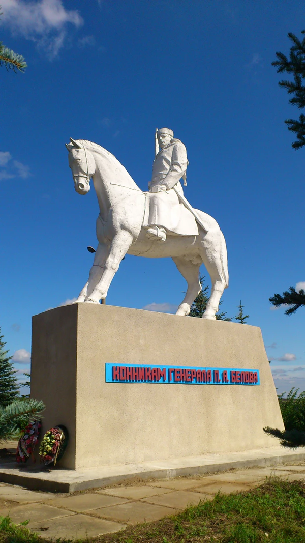В контрнаступлении и общем наступлении советских войск на западном направлении 1-й гвардейский кавалерийский корпус под командованием Белова не раз отличался в боях: после Ржевско-Вяземской операции (1942), оказавшись в окружении, более 5 месяцев сражался в глубоком тылу врага.