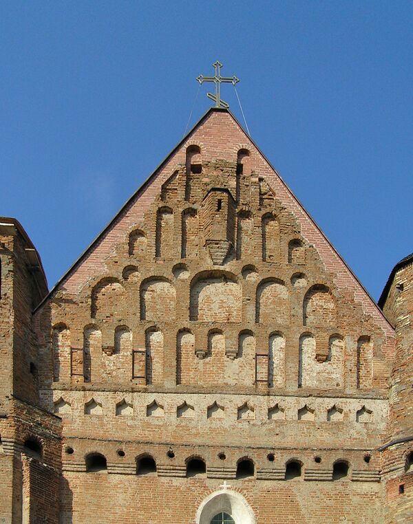 В Новогрудке (Гродненская область) в первой четверти XVI века был построен собор Св. Бориса и Глеба, который первоначально, до перестроек XVII—XIX вв., являлся трёхнефным двупрясловым с пятигранной одночастной апсидой строением, перекрытым остроконечной кровлей[13][2].