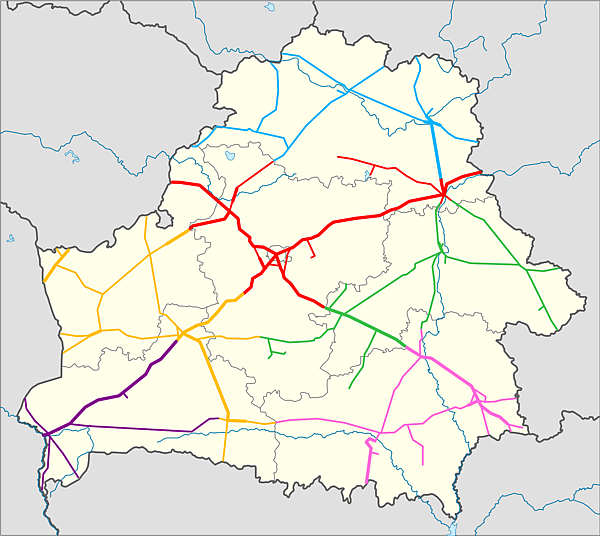 - Бигосово — Полоцк — Витебск — Заольша (от границы с Латвией до границы с Россией)