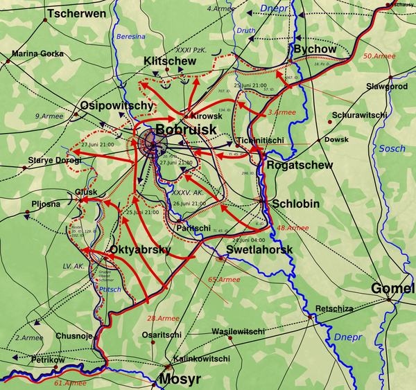 - 9-я армия группы армий «Центр», оборонявшая район по обе стороны Березины юго-восточнее Бобруйска;