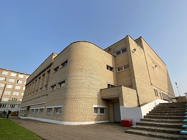 Расположен на улице Петруся Бровки, 6. Построен по проекту Павла Романовича Беляева в 1964 году[18] из кирпича и сборного железобетона. Четырёхэтажный П-образный в плане объём с выступающими угловыми ризалитами. Стены по всему периметру разделены пилонами. Ритм композиции главного фасада создают вертикальные лопатки. Все фасады, за исключением дворового, оштукатурены.