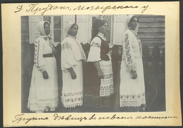 Всестороннее изучение крестьянского костюма белорусов началось в XIX в. и было связано с интересом белорусских и зарубежных учёных к духовной культуре и быту этого славянского народа. Из предметов материального быта белорусов начали составлять отдельные и богатые коллекции[3]. Они представляют собой богатый материал для сравнительного изучения крестьянского костюма разных регионов. В их состав входят женская и мужская одежда, приобретённая в районах Белоруссии, а в частности — в бывших Гродненской, Могилёвской, Минской, Витебской губерниях. Некоторые итоги и образцы одежды были опубликованы в XIX — начале XX в. Именно в упомянутый период было собрано достаточно много сведений о народных традициях, быте, антропологических особенностях представителей крестьянства, их одежде и фольклоре. В 1920-е гг. разрабатывались новые направления в этнологических исследованиях, в том числе согласно новым исследовательским методикам: