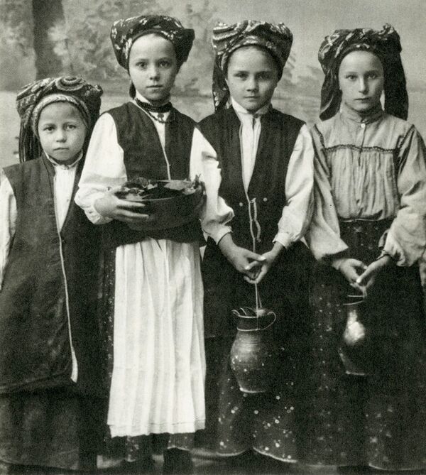 В одежде крестьянских детей до начала XX века также существовали некоторые отличия. Прежде всего, они были обусловлены половозрастными особенностями детей, а также местными традициями и социальным статусом родителей. В первые годы жизни ребёнка этих отличий не существовало[97].