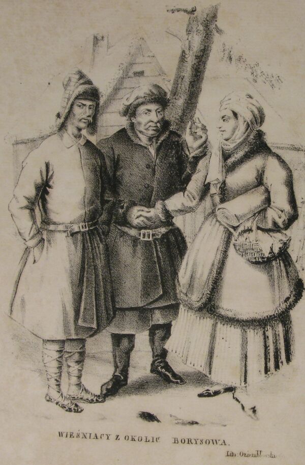 В Российской империи до ноябрьского восстания шляхта во время официальных мероприятий использовала традиционные наряды, сложившиеся во времена Речи Посполитой, а также имела право открыто носить оружие, хоть могла носить и общеевропейские костюмы. В 1831 г. открытое ношение традиционной дворянской одежды (контуши, делии, жупаны, конфедератки) было запрещено, поскольку считалось проявлением оппозиционности к российской власти. Поэтому среди дворянства Белоруссии распространёнными стали общеевропейские костюмы, среди которых приобрёл популярность дворянский (гусарский) костюм венгерского образца («венгерка») и ставший своеобразной заменой национального времён Речи Посполитой[33].