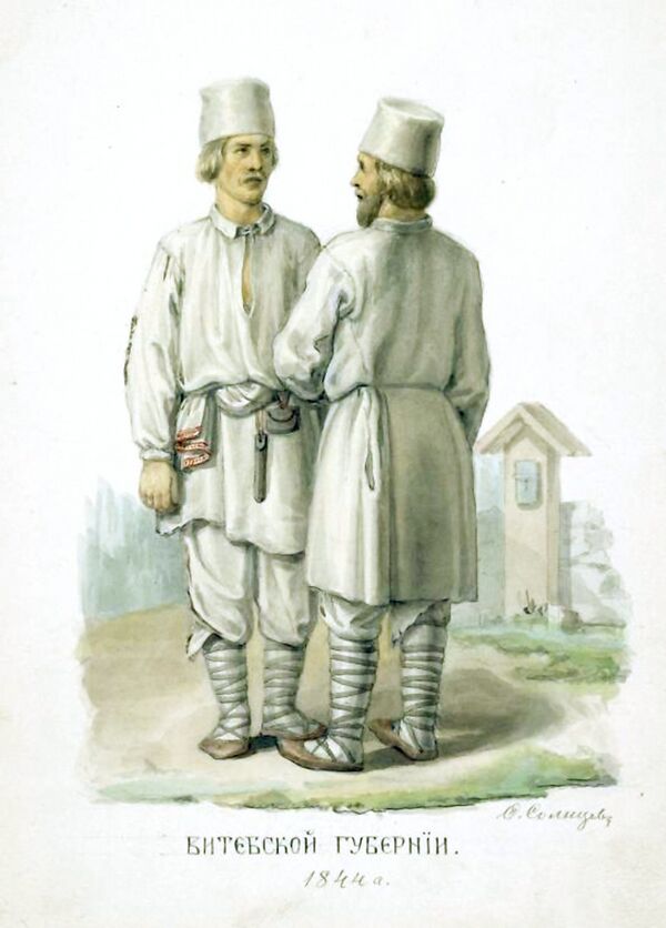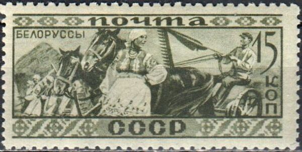 В 1933 году в СССР была выпущена этнографическая серия почтовых марок «Народы СССР». Среди них была марка, посвящённая белорусам.