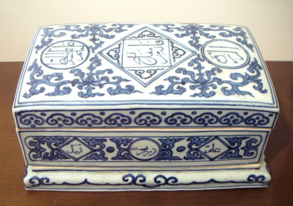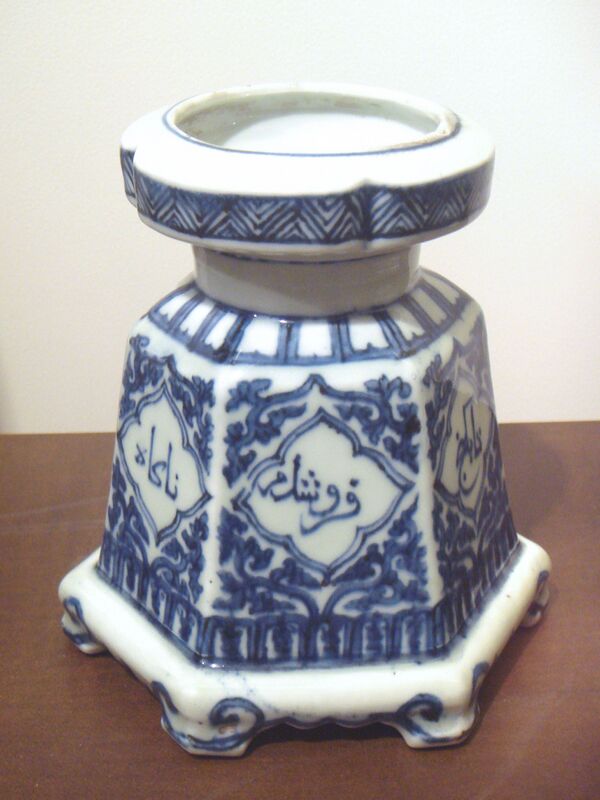 Для минской эпохи наиболее примечательно региональное производство кобальтовой расписной керамики, но на уровне частных мастерских, которые располагались в провинции Сычуань[9]. Нельзя сказать, что первые императоры минской династии Хунъу и Юнлэ были активными сподвижниками производства бело-голубой фарфоровой и керамической продукции, но уже в эпоху императора Сюаньдэ наметилась другая тенденция. Бело-голубая продукция XVI века характеризовалась большим исламским влиянием, в период правления императора Чжэндэ на изделиях часто присутствовала арабская каллиграфия. Огромное количество керамической продукции экспортировалось на рынки юго-восточной Азии.