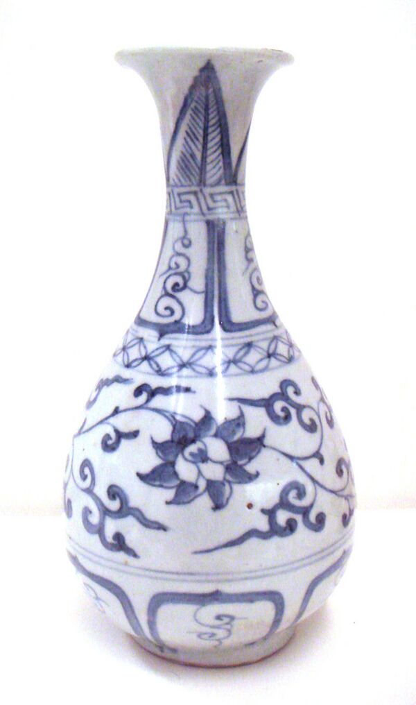 Несмотря на то, что сильное распространение этот вид керамических изделий получил в XIV веке уже в IX веке во время правления династии Мин воспроизводились первые образцы схожей продукции. Благодаря археологическим раскопкам в районе провинции Хэнань на территории работы печей Гунъи обнаружены осколки бело-голубой керамики[4]. Эти осколки не были фарфоровыми, а скорее глиняными, покрашенными голубым пигментом[5]. До времени правления династии Сун кобальт иногда использовался в качестве вспомогательного материала, но не имел широкого распространения[6].
