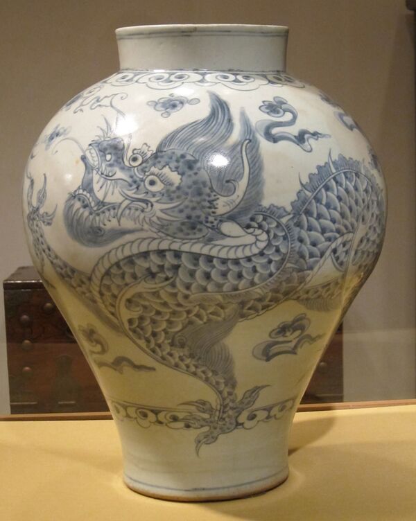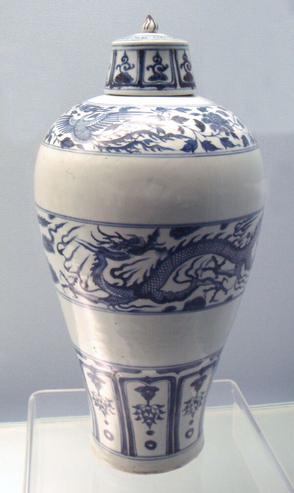 В 1368 году после сложного периода гражданской войны династия Мин захватила власть в Нанкине — городе, расположенном в южной части Китая, и сделала его своей столицей. Нанкин был столицей Поднебесной вплоть до 1420 года, когда третий император династии Мин переехал в Пекин. Представители династии Мин не закрыли производство бело-голубой керамики, установив свой контроль и специализировав разные виды продукции, предназначенные для религиозных ритуалов и повседневного использования.