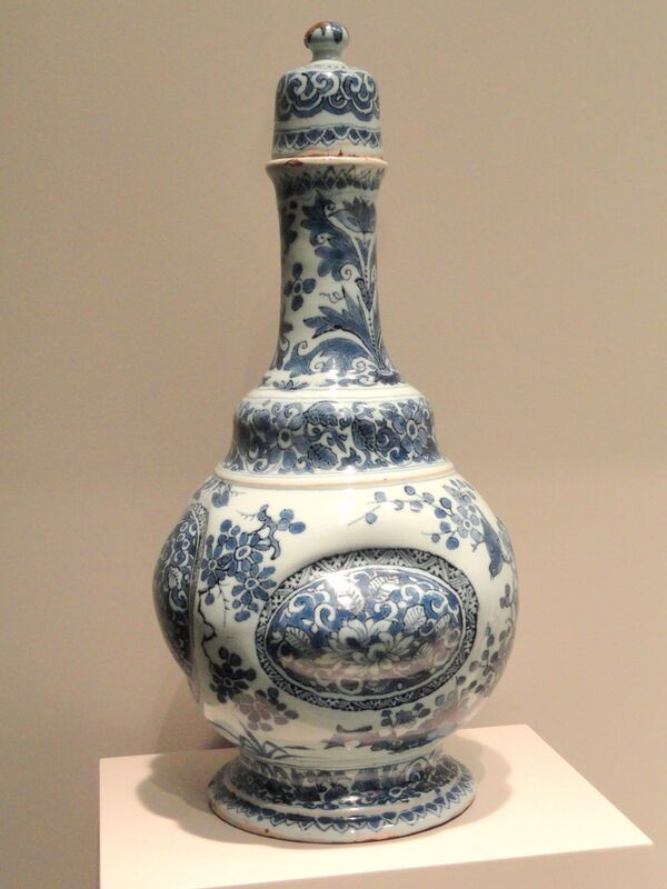 Oкисью кобальта вначале расписывали свои изделия китайские мастера, позднее они стали добавлять чёрную, жёлтую, зелёную, розовую краски, и только в 1720-х годах заимствовали у европейцев посредством голландских торговцев рецепты других «обжигающихся красок»[2]. Роспись синим кобальтом использовали голландские мастера делфтских фаянсов, испано-мавританской керамики, подмосковной Гжели, французских фаянсовых изделий из Руана.