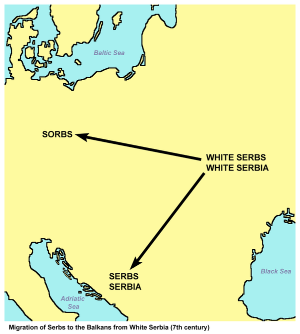 В начале VII века сербы жили в Белой Сербии (белый цвет у славян означал запад) — она была расположена в северном районе сегодняшней Чехии, но гораздо более крупная часть земель лежала в Польше, вероятно, на месте нынешней Силезии и Великой Польши. Проводилась экспансия в Лужицу и Мейсен, что привело к образованию народа лужицких сербов.