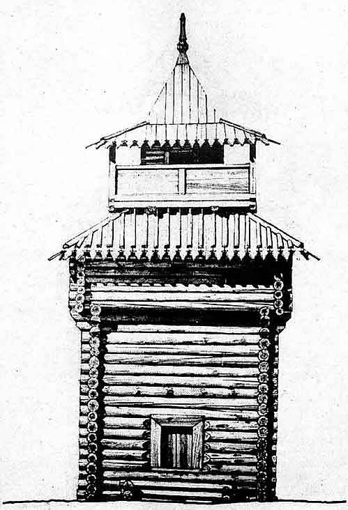 Пятая острожная башня, которая представляет собой сруб, выполненный без единого гвоздя, с бойнями и балконом, где дежурили смотровые. Стоит на своем историческом месте по сей день, единственная оставшаяся из тысяч подобных башен от Урала до Дальнего Востока. Четыре других башни перевезены на территории этнографических музеев.