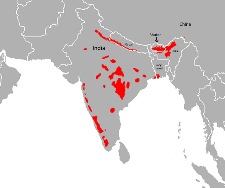 Раньше тигры нападали на людей во многих местах своего индийского ареала. Скорее всего это поведение вызвано тем, что тигры иногда нападают на индийского дикобраза. Иглы глубоко вонзаются в кожу неудачливого хищника и не выходят оттуда, вызывая острую боль. Такой охотник уже не в состоянии поймать крупную резвую добычу и выбирает мелкую дичь, иногда людей[9]. В настоящее время на обширном заболоченном пространстве, образованном общей дельтой рек Ганг и Брахмапутра, обитают около 500 бенгальских тигров. Так как в Индии проводятся мероприятия по защите этих животных, то в некоторых местах отдельные тигры считают человека доступной добычей из-за густонаселённости граничных с заповедниками территорий (при доступности других жертв так чаще поступают старые или ослабленные животные). Для обитателей островов дельты тигры-людоеды не являются единственной опасностью, но все же вызывают у них наибольший страх. Несколько случаев нападений зафиксировано и в национальном парке Бандхавгарх (в центральной части страны).