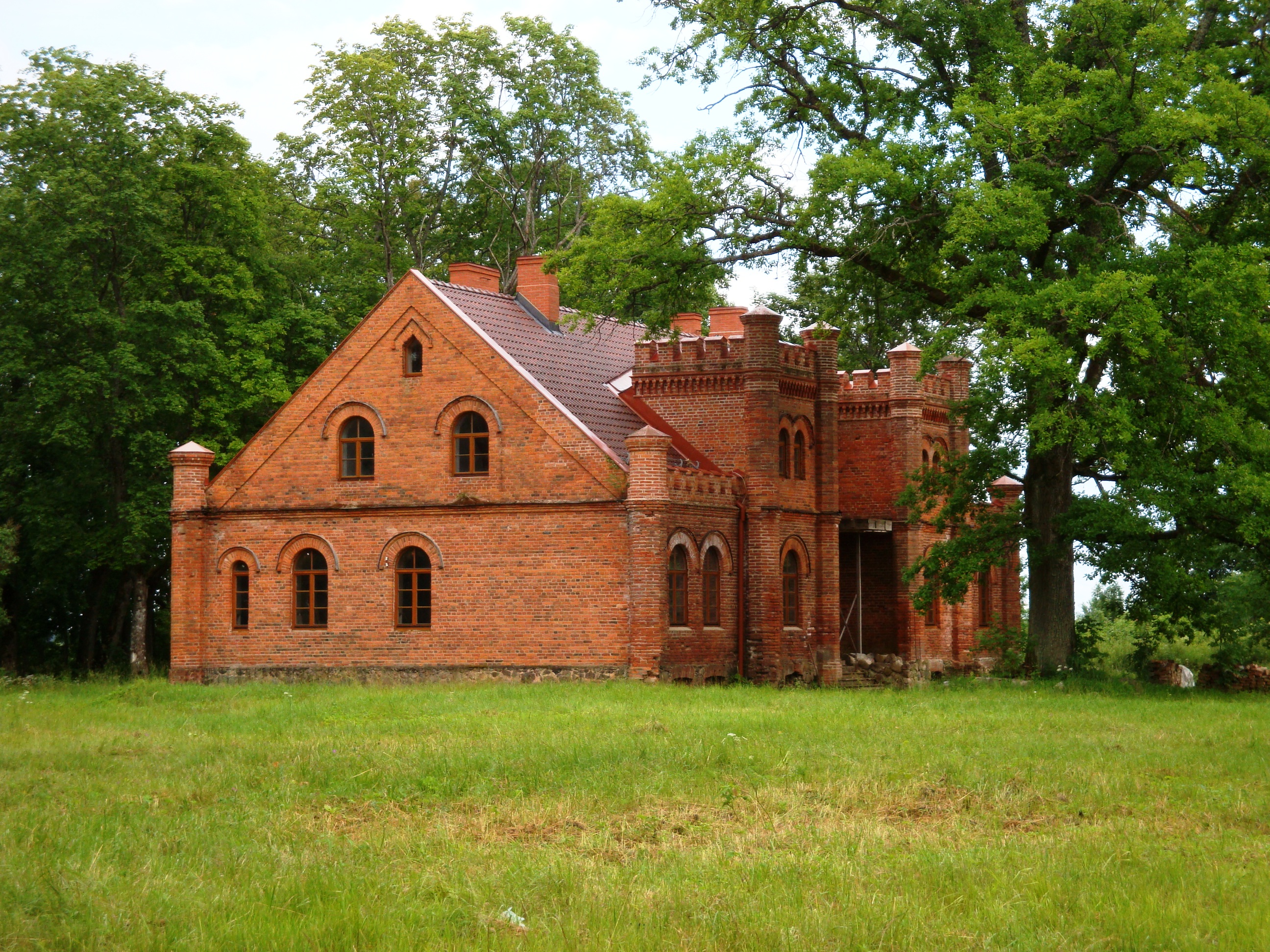 Описание герба: Из Балтийского гербовника В рассечённом поле возникающий слева чёрный орёл с золотым вооружением в лазури и червлёная кирпичная стена о трёх зубцах с чёрной дверью в серебре. Намёт сверху чёрный, снизу справа червлёный, снизу слева лазоревый, везде подбит серебром. В нашлемнике два чёрных орлиных крала, каждое обременено такой же стеной как и в щите. |