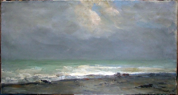 Полотно представляет собой выразительную марину, на которой изображено беспокойное море во время шторма. Белые, закипающие гребни волн подчёркивают силу и неукротимость стихии. На переднем плане волны глубоко заходят на берег, оставляя на мелководье выброшенные морем предметы.