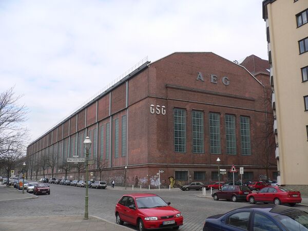 В 1907 году в Берлине Петер Беренс стал художественным советником концерна «Генеральная электрическая компания»: «AEG» (нем. Allgemeine Elektrizitäts-Gesellschaft). Концерн был крупнейшим предприятием в области электроэнергетики, машиностроения, производства электрических промышленных и бытовых товаров. Электричество в то время только входило в жизнь. Продукция AEG была рассчитана в основном на экспорт, и, по мнению организаторов, для её успешного продвижения на мировом рынке требовалось создать оригинальный фирменный стиль. Беренс построил для концерна ряд промышленных сооружений, включая здание Турбинной фабрики (1908—1909), первое немецкое здание с использованием стекла и бетона, корпус фабрики по производству небольших моторов (1910—1911), жилые дома для рабочих АЭГ в Хеннингсдорфе (1910—1911).
