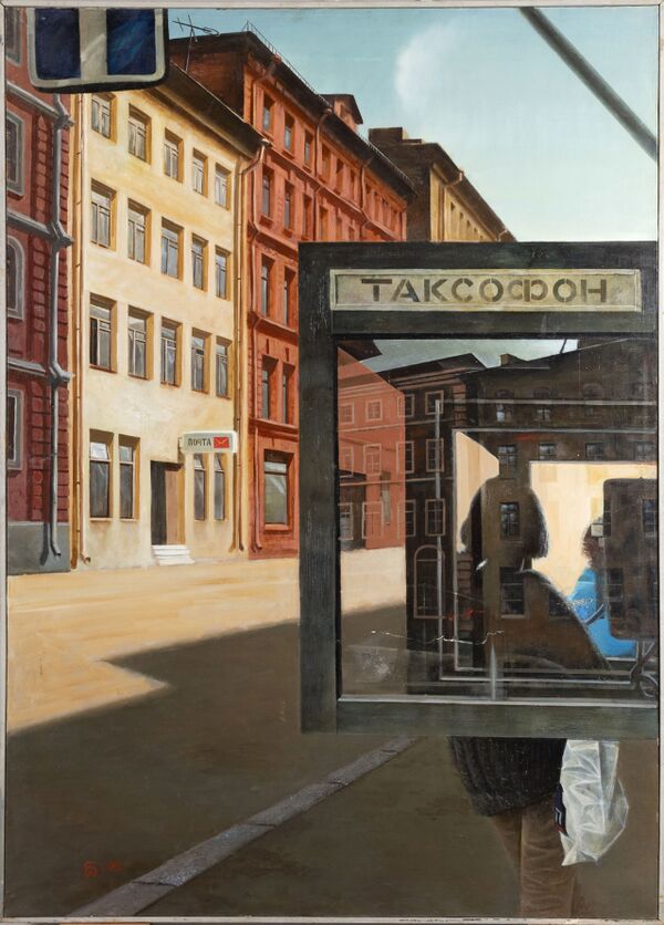 … Михаил Берзинг считал себя концептуалистом, так как основой для создания произведения у него была идея. Он говорил, что произведением искусства может быть все — важно, какой смысл ты в это вкладываешь. Конечно он использовал элементы гиперреализма, т. к очень любил передачу фактур различных предметов, и руководствовался при этом своей удивительной зрительной памятью, а не фотоматериалами. Даже приближаясь к реализму, он всегда отсекал все лишнее, искал пластическое решение, создавая запоминающийся, четкий образ. Например, в «Дома и солнце» отражение домов в будке, конечно же, не соответствует действительному, а создает свой особый микромир домов, окруживших фигуру в будке и вступивших с ней в особое взаимодействие. В последующих его работах условность в передаче отдельных объектов еще более заметна, фактурный реализм сочетается с образностью и некоторой абсурдностью увиденного. Человек исчезает из его картин, разнообразные пространства заполняют их, усиливая чувство одиночества и своими узнаваемыми фактурами затягивают смотрящего в новую почти метафизическую сущность.
