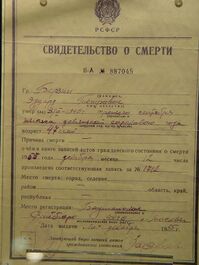 Свидетельство о смерти Берзина Эдуарда Петровича от 16 декабря 1955 г.[7]