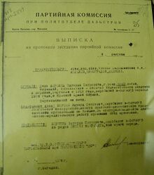 Выписка из протокола заседания парткомиссии при Политотделе «Дальстроя» от 8 февраля 1938 г. об исключении Берзина из рядов ВКП(б)[7].