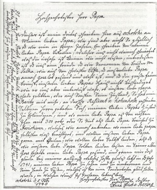 Первое морское путешествие россиян, предпринятое для решения географической задачи: соединяется ли Азия с Америкою и совершённое в 1727, 28 и 29 годах под начальством флота капитана I-го ранга Витуса Беринга: с присовокуплением краткого биографического сведения о капитане Беринге и бывших с ним офицерах. — С.-Петербург: при Императорской Академии наук, 1823.