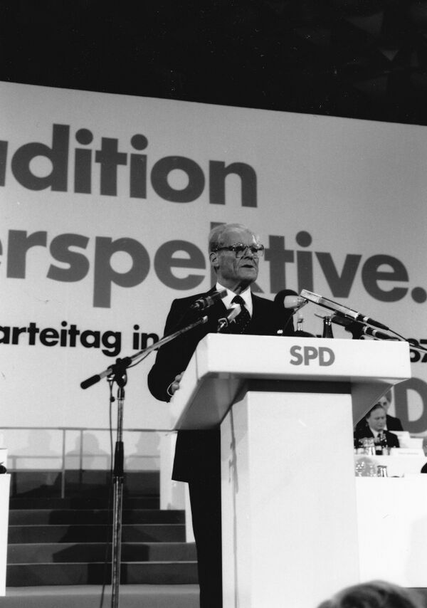 Съезд не одобрил этот проект и подверг его критике. Вместо Вилли Брандта в 1987 году программную комиссию возглавил новый Председатель СДПГ Ханс-Йохен Фогель, а в её состав в качестве исполнительного председателя вошёл премьер-министр Саара и глава местного отделения СДПГ Оскар Лафонтен, представлявший левое крыло партии и ставший основным автором нового проекта программы, представленного в марте 1989 года и сопровождавшегося крупной дискуссией в СМИ[7].
