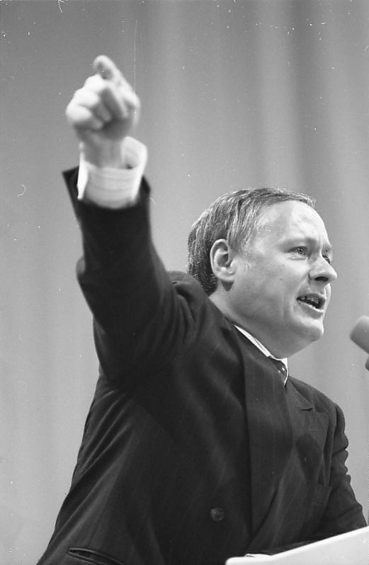 В 1980-е годы СДПГ вступила в состоянии серьёзного кризиса. Не до конца оправившись от скандала с разоблачением агента восточногерманских спецслужб Гюнтера Гийома и вызванной, в том числе им, отставки лидера и ведущего идеолога партии Вилли Брандта с поста канцлера ФРГ, а также значительного ухудшения результатов на выборах 1976 года (когда ХДС/ХСС вновь получил большинство в Бундестаге и преемник Брандта Гельмут Шмидт смог сохранить пост только с помощью СвДП, которая тогда была в коалиции с СДПГ), западногерманские социал-демократы теряли поддержку избирателей, что усугубляло разногласия в рядах самой партии. Особенное недовольство значительной части членов СДПГ вызвала поддержка Шмидтом т. н. «двойного решения» НАТО. Выход СвДП из коалиции с СДПГ в сентябре 1982 года и вступление на пост канцлера представителя ХДС Гельмута Коля вызвали переход социал-демократов в оппозицию[4].