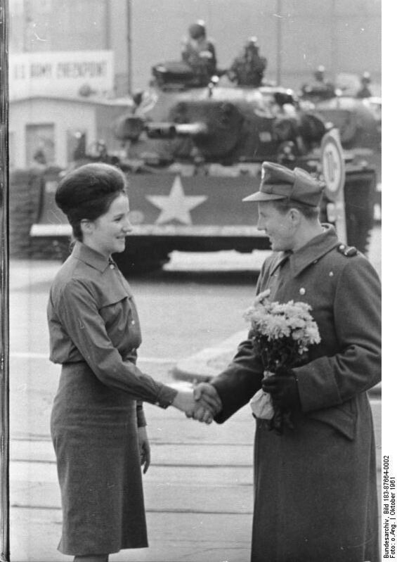 26—27 октября в Берлине возник конфликт, известный как «инцидент у КПП „Чарли“». Советская разведка донесла Хрущёву о готовившейся американской попытке снести пограничные заграждения на Фридрихштрассе. К КПП «Чарли» прибыли три американских джипа с военными и гражданскими лицами, за ними шли мощные бульдозеры и 10 танков. В ответ на Фридрихштрассе прибыла 7-я танковая рота капитана Войтченко 3-го танкового батальона майора Василия Мики 68-го советского гвардейского танкового полка. Опознавательные знаки на советских боевых машинах были замазаны грязью, чтобы создать впечатление, что они принадлежат ГДР[5]. Советские и американские танки стояли друг против друга всю ночь. Советские танки были отведены утром 28 октября. После этого были отведены и американские танки. Это означало окончание Берлинского кризиса[3].