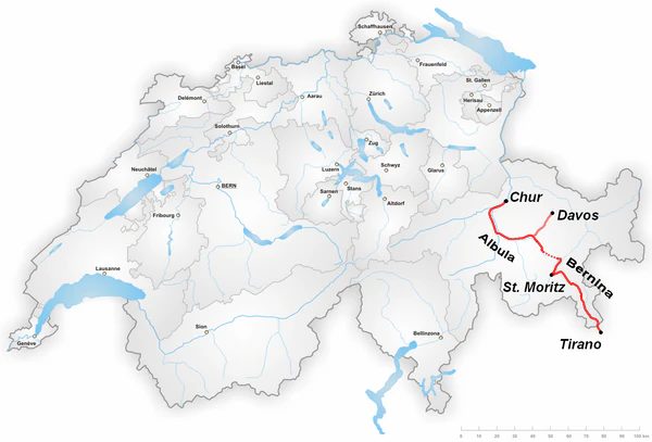 На линиях Альбула и Бернина маршрут Бернина Экспресс был объявлен объектом Всемирного наследия ЮНЕСКО в 2008 году. Поездка на Бернина Экспресс, это четырехчасовое железнодорожное путешествие по 196 мостам, через 55 туннелей и через перевал Бернина на 2253 метра над уровнем моря. Вся линия 1.000 мм (метровой колеи) и электрифицирована.