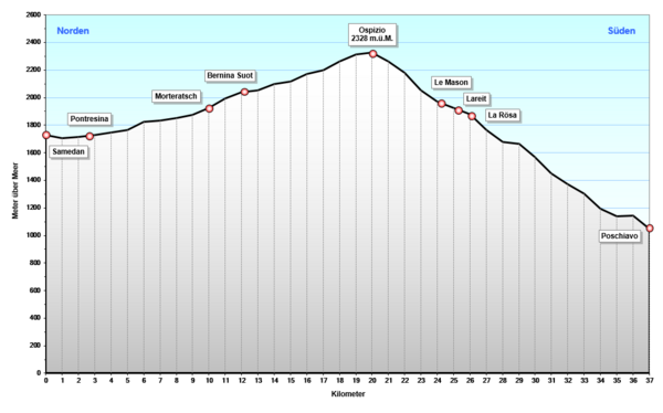 Ближайшие к перевалу населённые пункты — Понтрезина (нем. Pontresina, 1 805 над уровнем моря, в 13 км от перевала), и Сан-Карло ди Поскьяво (нем. San Carlo di Poschiavo, (1 093 м, в 8 км от перевала).