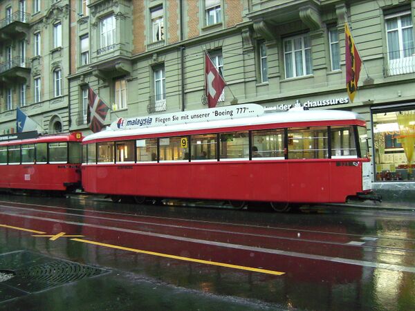 - Прицепные четырёхосные вагоны из Цюриха, в том числе № 316, 341, 342, 343, 341, 344, 345[10]. Последние два цюрихских прицепных вагона (№ 342 и 345) были выведены из эксплуатации 4 июня 1991 года[12].