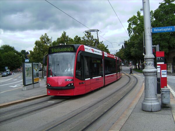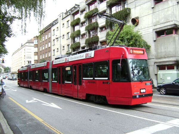 | Основные типы ПС | Сочленённые восьмиосные трамваи серии Be 8/8, низкопольные трёхсекционные сочленённые трамваи серии Be4/8, Combino (на городских маршрутах) | ||