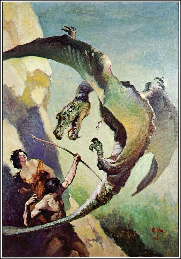 Пеллюсидар — в буквальном смысле доисторический мир. Здесь сосуществуют животные практически всех геологических эр, и пещерные люди вынуждены укрываться от как от юрских и триасовых рептилий, так и грозных птиц и млекопитающих плиоцена. Здесь можно провести прямые параллели с «Затерянным миром» Конан Дойля, который вышел в свет за два года до выпуска первого романа пеллюсидарского цикла. У Конан Дойля также представлена концепция остановившегося времени, которое образует разрыв с историческим временем большого мира. Степень мифологизации у Берроуза намного больше: Иннес прямо рассуждает о религии и сравнивает себя Адамом, которому предстоит отыскать в «детстве мира» свою Еву, а встречаясь с теми или иными доисторическими чудовищами, рефлексирует на тему, что чувствовали в аналогичной ситуации его далёкие пращуры[110]. Далее его поражает то, что подвиг превращается в обыденность, и его странствие по доисторическому миру оказывается «монотонным». Важной составляющей ритуала инициации является познание сексуальности, так как после перехода в состояние зрелости человеку предстоит продолжить род, заслужив это право. Махары — господствующая раса подземного мира, угнетающая людей, — это яйцекладущие ящеры-людоеды женского рода, в буквальном смысле воплощение «пожирающего материнства». Убив четверых махаров и похитив их священную книгу, где разъясняется тайна оплодотворения яиц, Иннес совершает эпический подвиг: он обрёк жестоких самок на вымирание, отдав Пеллюсидар в руки людей. Завершение инициации (Иннес и Перри завернулись в шкуры поверженных ими махаров) должно сопровождаться наградой: Дэвиду предстоит обрести Диану и вернуться в верхний мир, чтобы привезти обратно те предметы, которые помогут ему стать правителем[111]. То есть последующие романы можно трактовать как восхождение к высшим степеням шаманского посвящения, которые предполагают вознесение в верхний мир. Статус Иннеса-геолога и горнозаводчика как божественного правителя может вызывать параллели со статусом кузнеца во многих древних культурах. Первый вклад Дэвида в развитие Пеллюсидара — изобретение лука и стрел, за которым он выковывает меч и создаёт порох. Впрочем, он желает иного будущего, рассказывая Перри, что хочет «мира со швейными машинками, механическими жатками и плугами, бумагой и типографиями»[112].