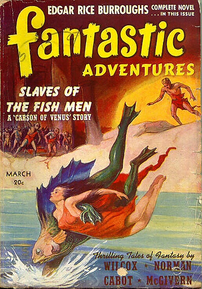 В британской приключенческой литературе данному шаблону полностью соответствует роман Хаггарда «Она». Эдгар Берроуз успешно осуществил адаптацию шаблона к американской коммерческой литературе, особенно в жанре «затерянных миров»; последующие писатели так или иначе отмечены его влиянием[92]. Клишированным является образ главной героини, наиболее известной из которых в творчестве Берроуза предстаёт Дея Торис. Внешность её предстаёт как экзотическая, что только усиливает её красоту и стати, описания в последующих книгах цикла не становятся менее экспансивными, но ничего не добавляют к созданному в «Принцессе Марса» первому впечатлению. Описания героинь второй книги «Боги Марса» — Файдоры и Тувии — построены по тому же шаблону, как и экзотических дам Пеллюсидара и Венеры, и десятков иных книг Берроуза, что создаёт «острое чувство дежавю». В последующих томах первой трилогии марсианского цикла (ещё «Владыка Марса») использованы вариации сюжета первого романа, в котором Джон Картер вновь насильственно разлучён с Деей Торис, которую неоднократно похищают, и в поисках которой он буквально исходил весь Марс от полюса и до полюса, пока, наконец, не провозглашён военным владыкой всей планеты. Б. Эттибери заявил, что фэнтезийный протагонист Берроуза сильно отличается от протагониста волшебной сказки (в отличие от типизированной принцессы). И землянки, и марсианки — своего рода «полуведьмы, полубогини». Обычный герой сказки имеет некое прошлое, даже семью, которая, впрочем, мало что значит для основного действия. Джон Картер (как и Карсон Непер с Венеры, и многие иные) — парадоксальное соединение «благородного аристократа и безродного бродяги». Джон Картер — некое сочетание бессмертного Агасфера и мелвилловского Измаила. Одновременно он истинный американец, воплощающий традицию южных джентльменов-плантаторов, причём все привычные ему этикетные условности находят полные аналоги на Марсе. Тарзан — не просто приёмыш обезьян, а сын английского лорда, чьё благородство «сияет через все препоны, создаваемые обстоятельствами». Иными словами, Эдгар Берроуз активно пропагандировал теорию «природного аристократизма», и, именуя себя в предисловиях племянником Джона Картера, претендовал на компенсацию своего ничем не примечательного происхождения. Спутником главного героя обязан быть «благородный дикарь» (Тарзан содержит этот элемент в себе самом), при этом марсианский зелёный гигант Тарс Таркас — это проекция Зелёного Рыцаря, с которым сражался сэр Гавейн[93]. Шаблонность неуклонно возрастала в позднем творчестве Берроуза, образовав целый жанр «Меч и Планета». Искусство Берроуза-рассказчика на этом этапе Б. Эттибери издевательски сравнивал с «бульдозером», что не мешало многочисленным подражателям 1930—1940-х годов[94].