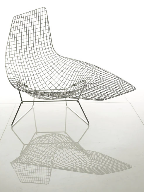 Стулья выпускались с разной степенью обивки поверх лёгкой сетки и сначала изготавливались вручную. На краю стула использованы две тонкие проволоки, приваренные по обе стороны сетчатого сиденья. Этот дизайн был запатентован Имзом для проволочного стула, произведённого компанией Herman Miller. В итоге Herman Miller выиграл, и Bertoia & Knoll изменили дизайн края сиденья, использовав более толстую одинарную проволоку и отшлифовав края проволоки сиденья под ровным углом — таким же образом стулья производятся и сейчас. Тем не менее, коммерческий успех, которым пользовался алмазный стул Бертойи, был мгновенным. Только в 2005 году асимметричный шезлонг Бертойи был представлен на Миланской мебельной выставке и сразу же раскуплен.