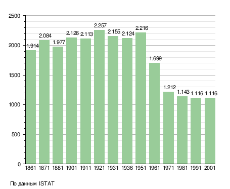 Население составляет 1162 человека (2008 г.), плотность населения составляет 58 чел./км². Занимает площадь 20 км². Почтовый индекс — 26821. Телефонный код — 0377.