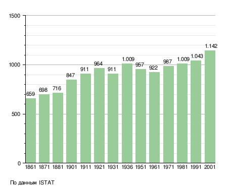 Население составляет 1227 человек (2008 г.), плотность населения составляет 212 чел./км². Занимает площадь 6 км². Почтовый индекс — 24060. Телефонный код — 035.