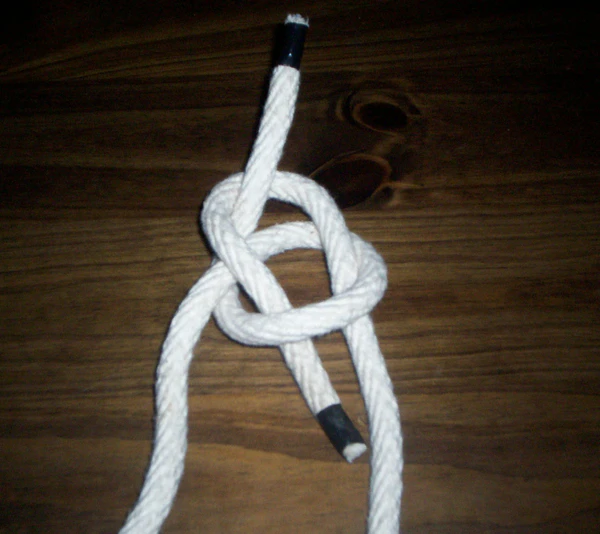 - завязать прямой узел; потянув за ходовой конец, узел превратится в обратный штык; ходовой конец вставить в первый полуштык; затянуть[35];