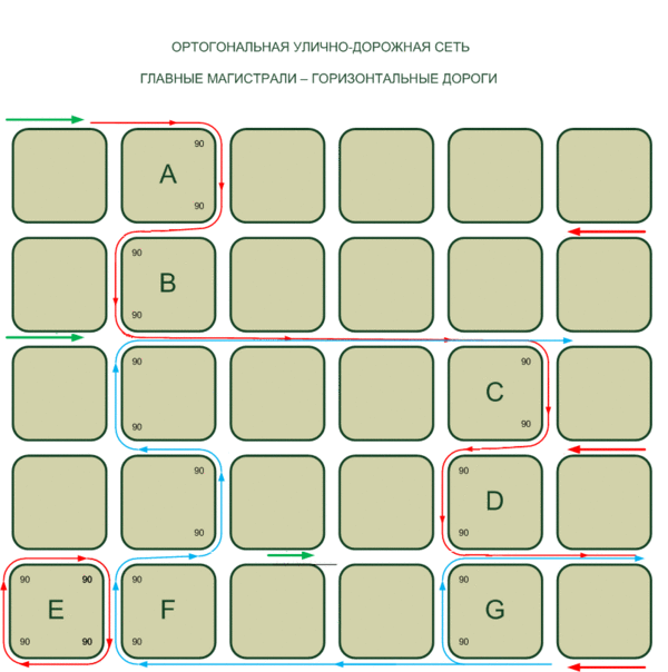 Три основных принципа организации дорожного движения в крупных городах в двухмерном пространстве (на плоскости) без применения Автоматизированной системы управления дорожным движением (АСУД) в рамках действующих норм и правил:
