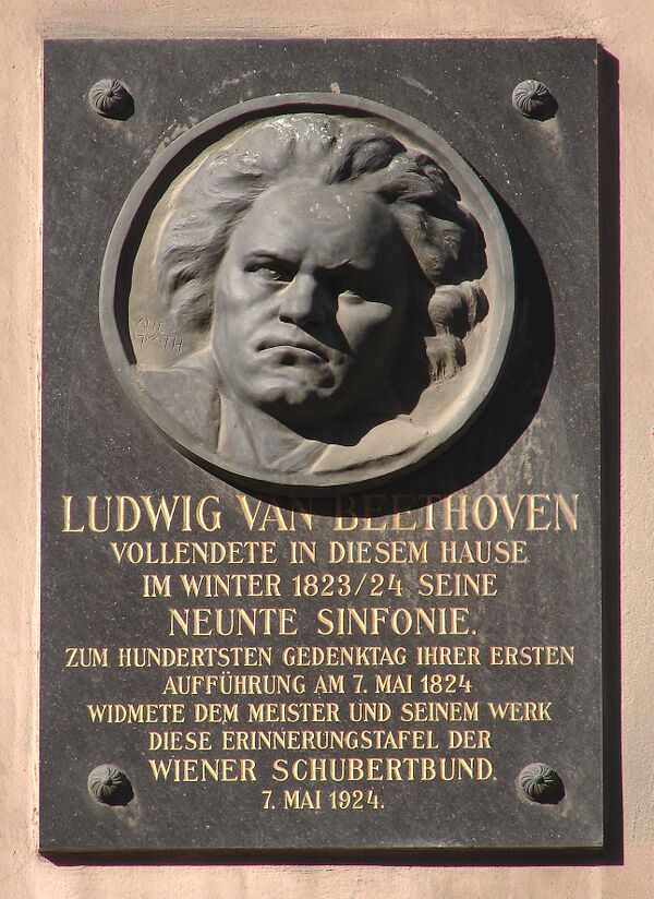 Девятая симфония была исполнена в 1824 году. Публика устроила композитору овацию. Известно, что Бетховен стоял спиной к залу и ничего не слышал, тогда одна из певиц взяла его за руку и повернула лицом к слушателям. Люди махали платками, шляпами, руками, приветствуя композитора. Овация длилась так долго, что присутствовавшие тут же полицейские чиновники потребовали её прекращения. Подобные приветствия допускались только по отношению к особе императора[11].