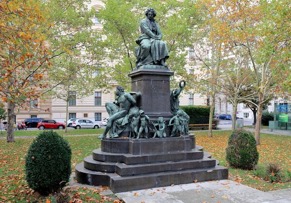 - По всему миру в честь Бетховена установлено множество памятников. Первый памятник Бетховену был открыт на родине композитора, в Бонне, 12 августа 1845 года по случаю 75-й годовщины со дня рождения. В 1880 году появился памятник и в Вене — городе, тесно связанном с творчеством музыканта. Автор книги «Образы Бетховена» искусствовед Зильке Беттерман (Silke Bettermann) отмечает, что ему удалось насчитать около ста монументов в 54 городах на всех пяти континентах[35].