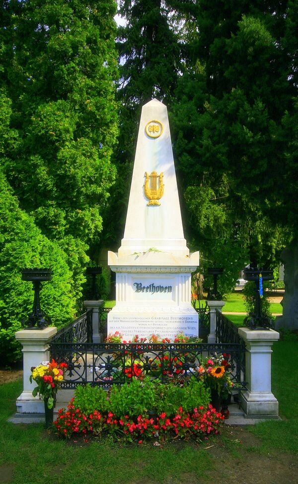 Людвиг ван Бетховен умер 26 марта 1827 года, на 57-м году жизни. Свыше двадцати тысяч человек шли за его гробом. Во время похорон на Верингском кладбище была исполнена любимая заупокойная месса Бетховена Реквием до-минор Луиджи Керубини. На могиле прозвучала речь, написанная поэтом Францем Грильпарцером[11]: