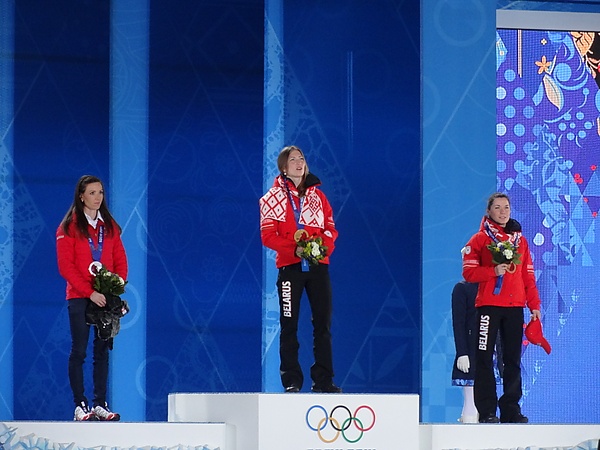 Второе олимпийское золото в Сочи завоевала Дарья Домрачева. Бронзовую медаль получила ещё одна белорусская спортсменка — Надежда Скардино.